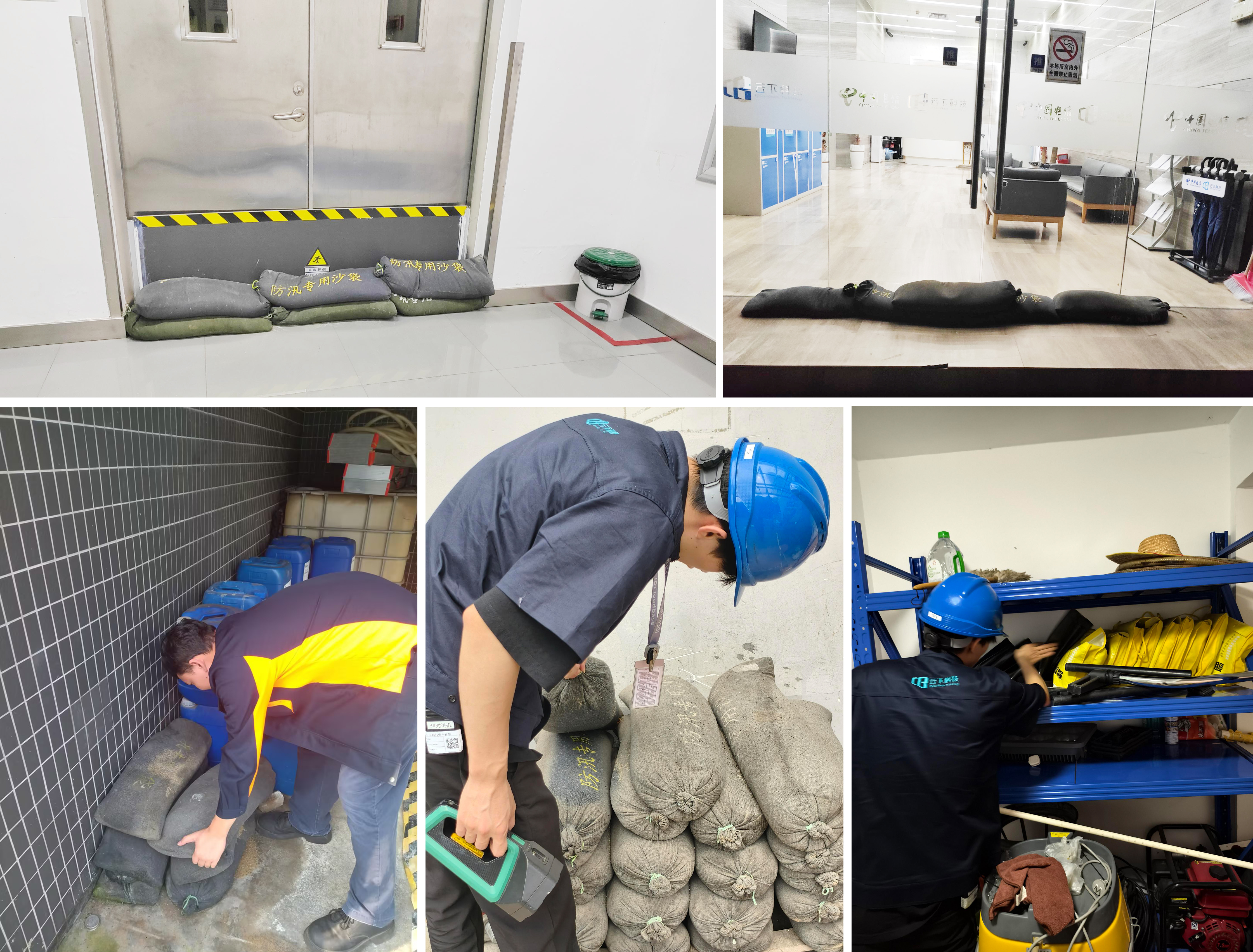 为保障预案落地可执行、可闭环,云下科技提前部署防汛物资储备工作,备足沙袋、挡水板、抽水泵、照明设备、防滑垫、防雨布等应急物资,并在园区重点点位进行分布式布设,确保极端天气下响应“有物可用”。